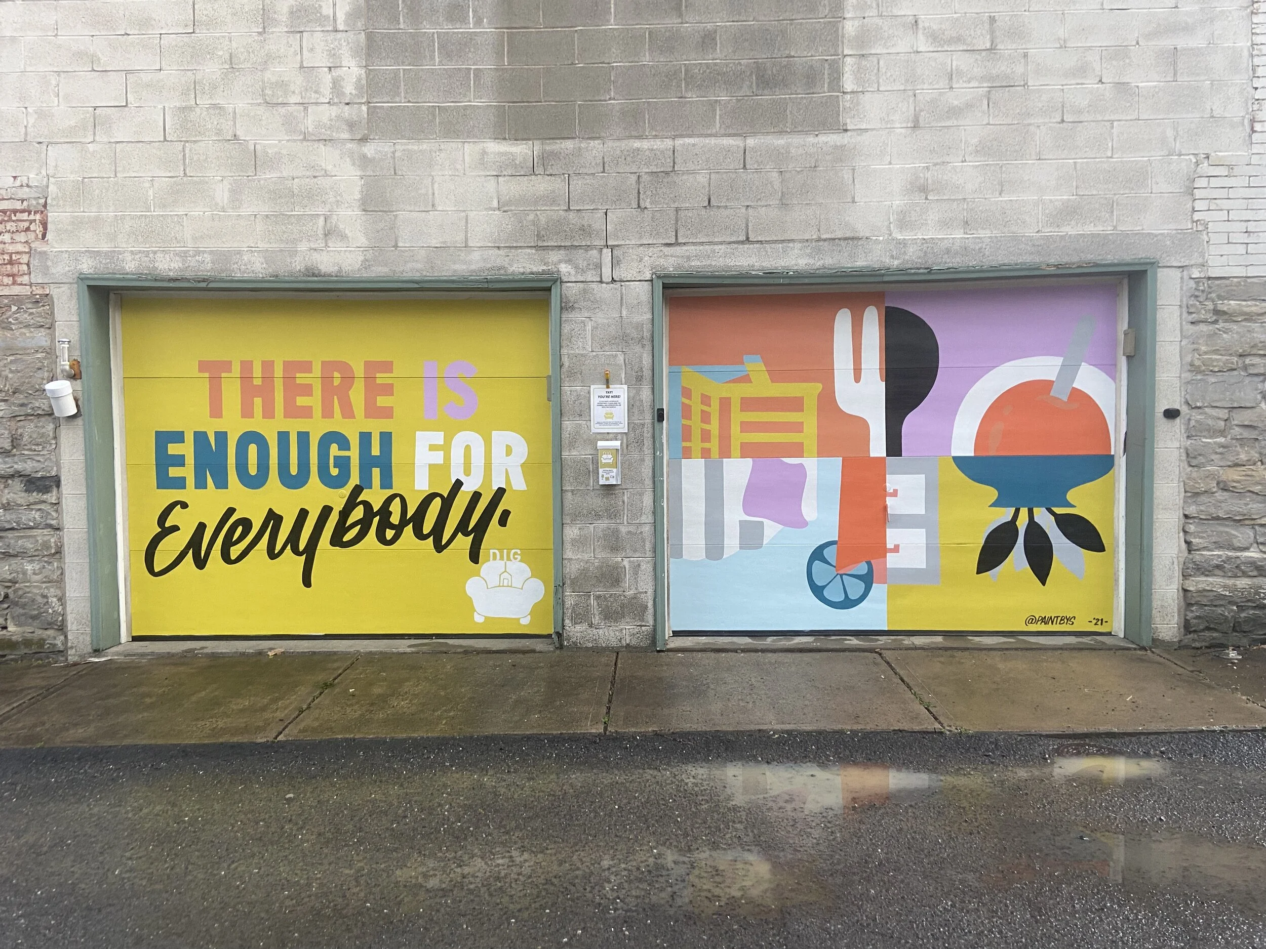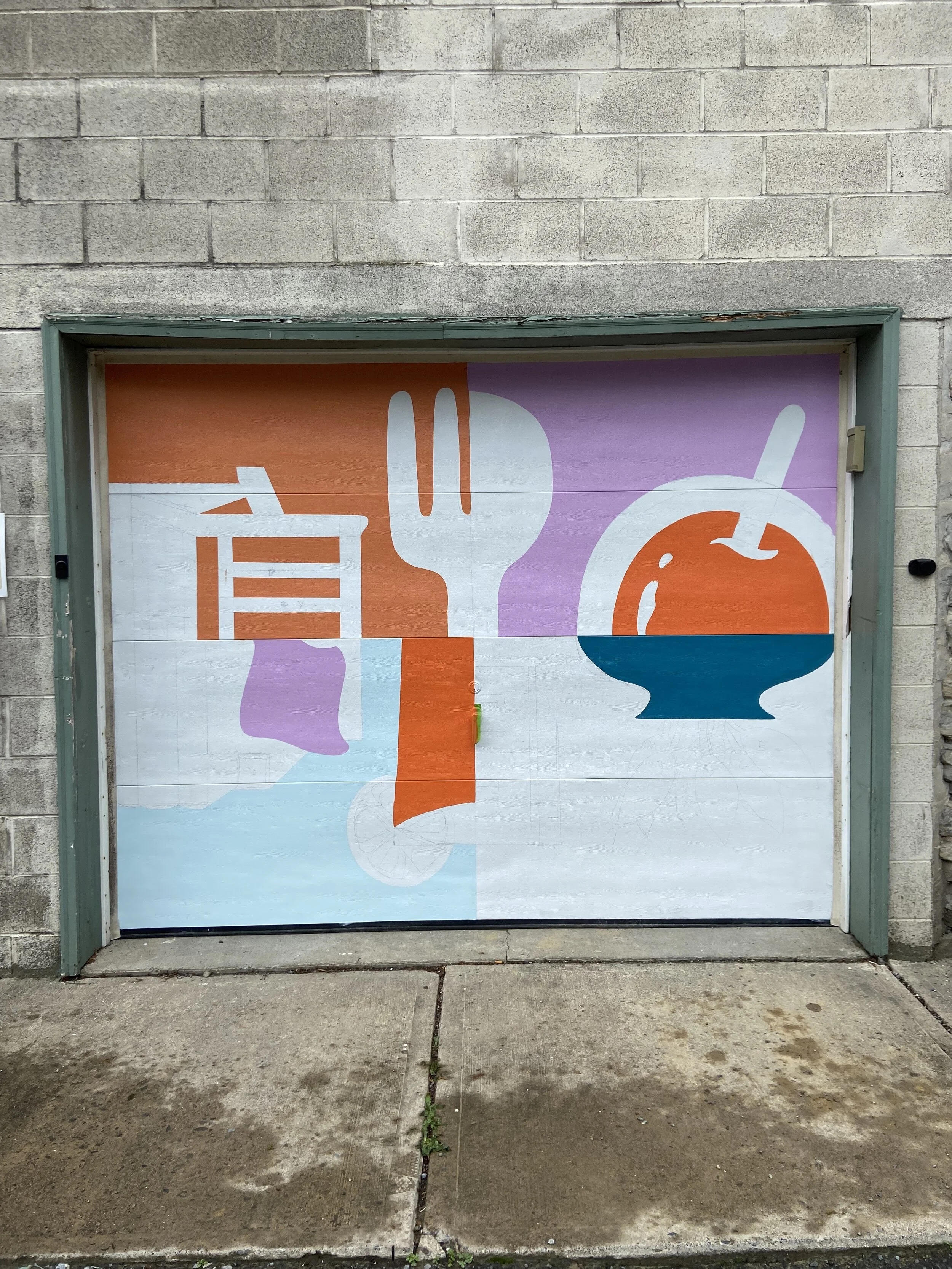 dig meets paint by s, paint by s meets dig, the rest is history. we are honored to get a chance to work with this incredible team & bring a little life to their garage doors in downtown mifflinburg, pa.